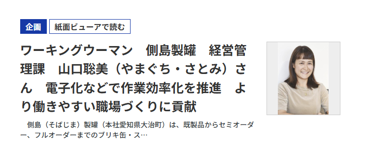 中部経済新聞様「ワーキングウーマン」に経営管理チームの山口をご掲載いただきました。